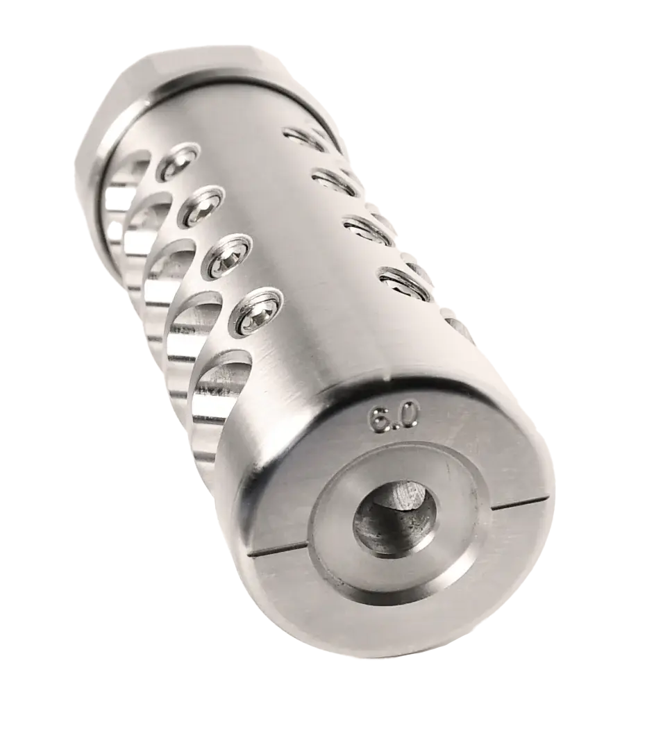 The new fine-tuned Bastard port has been engineered to decrease concussion while retaining maximum recoil reduction. In the muzzle brake community, there is an unwritten law that says “more concussion, more recoil reduction” and vice versa. This is something we really dug into, and we have found this to simply be not true. Borrowing from decades of research in the golf industry with their “sound is feel” philosophy, we wanted to figure out why a technically more effective and superior muzzle brakes would often anecdotally “feel” harsher even though the gun moved less and moved slower. Well, we had a eureka moment with how the sound or tone works in conjunction with the physical recoil. The new fine-tuned Bastard port and internal manifold produce a softer and sonically smoother recoil impulse by shaping the sound, into a lower frequency. The perception to the shooter is a much softer shooting rifle. This brake is easier on the ears and easier to stay in target, period.